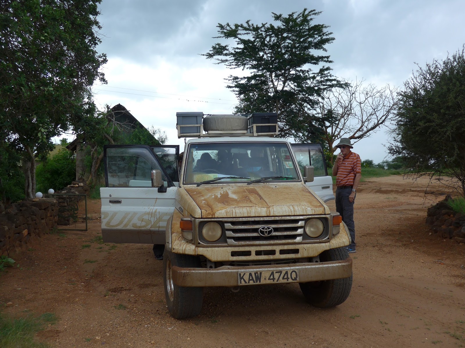 | The MCC cruiser properly showing the results of driving days on dirt and mud roads. Dad was riding shotgun and only gave a yelp of alarm at one point (!), descending down some rocks. |
